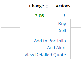 For tools with multiple symbols, QuoteMedia has added support for an Actions column/feature that adds a column to the right of the table with various “actions” that a user can take.